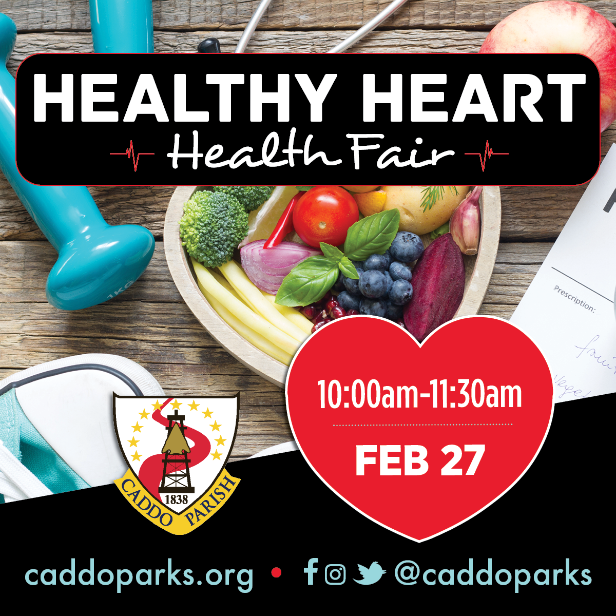 Caddo Parish Parks and Recreation will offer a Healthy Heart Health Fair to educate, promote awareness of and its long-term effect of day-to-day health issues, at Legion Hills Community, 1004 S. Pardue St., Vivian, LA. on February 27, 2025 from 10:00 am - 11:30 am. Health professionals will serve as guest presenters.  Blood pressure checks, blood glucose, and wellness check ...